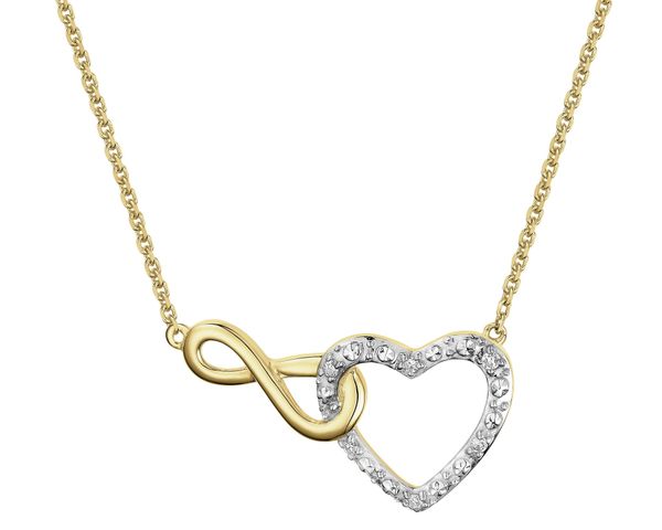 Naszyjnik z żółtego złota z diamentami – serce, nieskończoność – 0,02 ct – próba 375 – 220.408. Żółte złoto rodowane