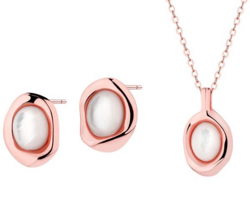 Kolczyki i naszyjnik z mosiądzu pozłacanego z masą perłową – komplet