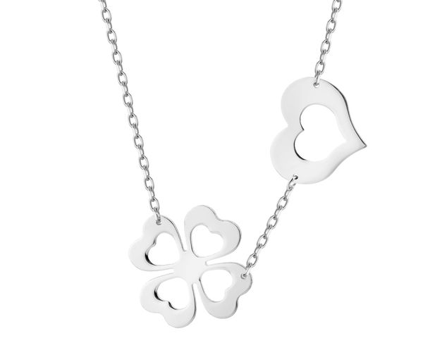 Naszyjnik srebrny – koniczyna, serce – AP543-3584. Srebro rodowane