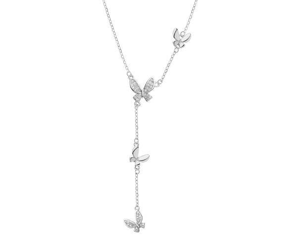 Naszyjnik srebrny z cyrkoniami – motyle – AP541-8752. Srebro rodowane