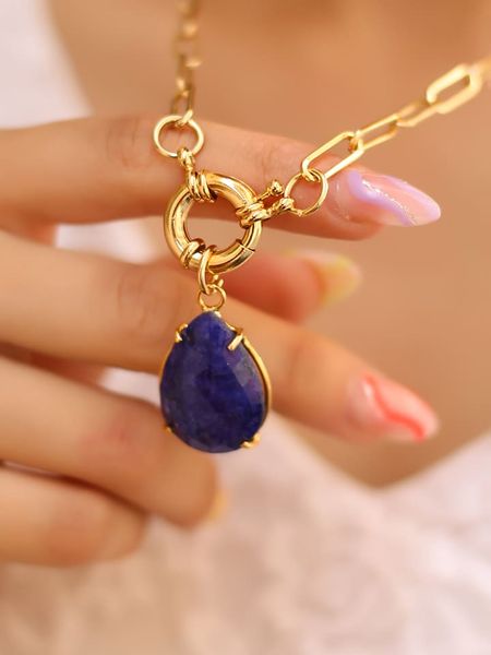 naszyjniki pozłacane akcesoria damskie l’atelier de gaia niebieskie naszyjniki naszyjniki z mosiądzu naszyjniki złote naszyjniki ze sklepu limango.pl akcesoria damskie limango.pl naszyjniki l’atelier de gaia naszyjniki z szafirem