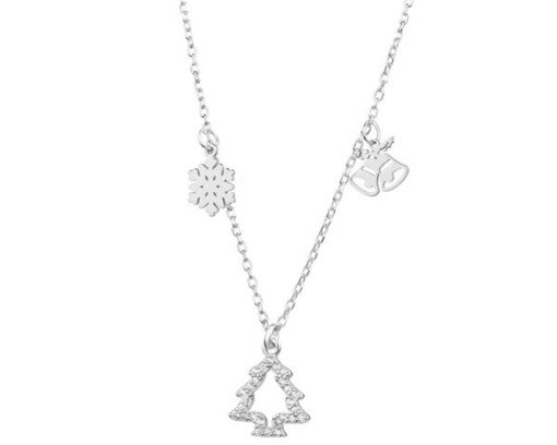 Naszyjnik srebrny z cyrkoniami – choinka, śnieżynka, dzwonki