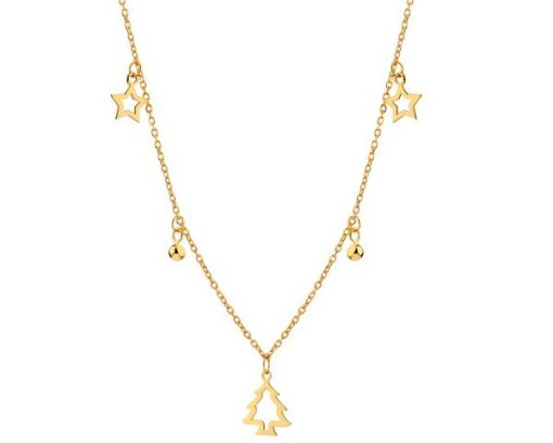 Naszyjnik srebrny – choinka, gwiazdy, kulki – AP533-8035. Srebro pozłacane