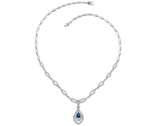 Naszyjnik z białego złota z brylantami i szafirem – 45 cm – próba 750 – 220.853. Białe złoto rodowane