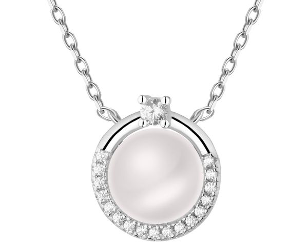 Naszyjnik srebrny z perłą i cyrkoniami – AP542-9303. Srebro rodowane