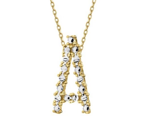 Złoty naszyjnik – litera A – AP543-6522. Żółte złoto rodowane