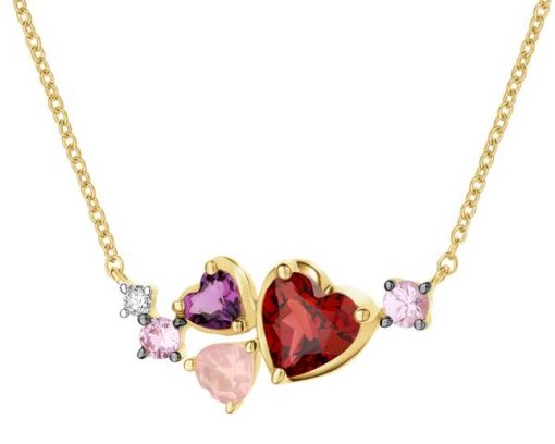 Naszyjnik z żółtego złota z diamentami, kamieniami szlachetnymi i ozdobnymi – serca – próba 585 – 194.220. Żółte złoto rodowane