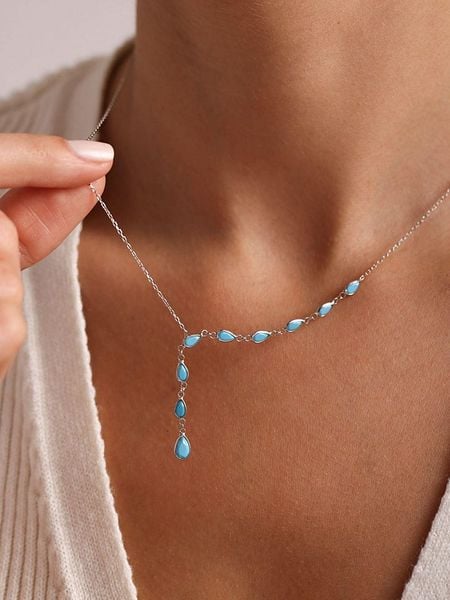 – materiał: srebro Sterling próby 925- powłoka: rodowanie- typ łańcuszka: ankier- rodzaj kamienia: kamień ozdobny- kolor kamienia: turkusowyWskazówka: Zdjęcie produktu w powiększeniu.