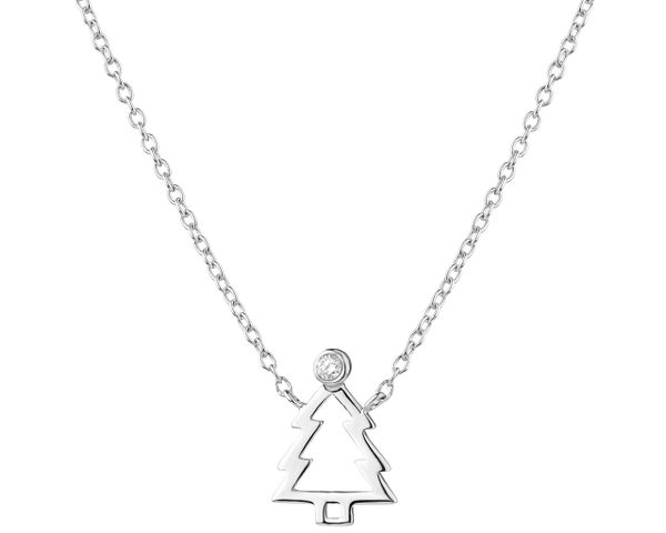 Naszyjnik srebrny z cyrkonią – choinka – AP127-6245. Srebro rodowane