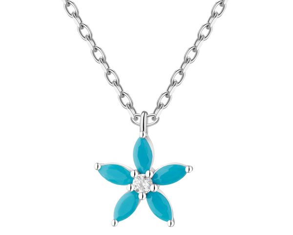 Naszyjnik srebrny z cyrkoniami – kwiat – AP542-2312. Srebro rodowane