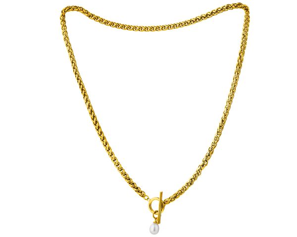 Naszyjnik ze stali szlachetnej z perłą – EL539-1582. Stal szlachetna