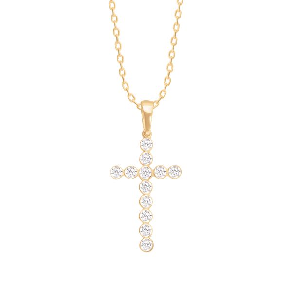 Łańcuszek Forza ze złota próby 375 z zawieszką w kształcie krzyża o wielkości 2 cm za złota próby 375. Krzyż to symbol zycia i sił witalnych. Wielkość zawieszki: 2 cm Liczba cyrkonii: 12 Waga: 0,45 gram Długość łańcuszka: 40 + 5 cm przedłużki Waga: 0,7 gram