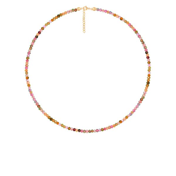 Naszyjnik wykonana z kamieni fasetowanych turmalin zwanego kamieniem przyjaźni.Turmalin jest kamieniem naturalnym, dlatego jego kolor może delikatnie odbiegać od przedstawionego na zdjęciach. Świadczy to o jego niepowtarzalności i oryginalności.Długość naszyjnika: 40 + 5 cm przedłużkiZe względu na użycie kamieni naturalnych, wymiary naszyjnika mogą się nieznacznie różnić. Zapięcie wykonane ze stali pozłacanej 18-karatowym złotem.