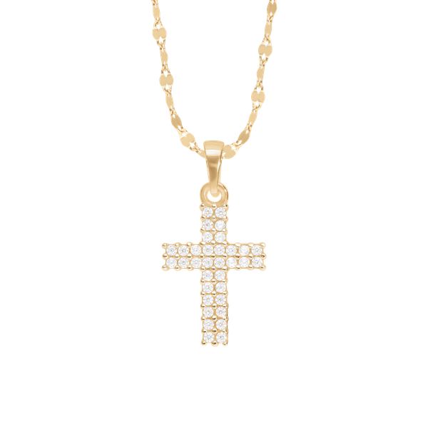 Łańcuszek Sogliola ze złota próby 375 z zawieszką w kształcie krzyża o wielkości 1,5 cm ze złota próby 375. Krzyż to symbol zycia i sił witalnych. Wielkość zawieszki: 1,5 cm Liczba cyrkonii: 34 Waga zawieszki: 0,55 gram Długość łańcuszka: 42 cm Waga: 0,85 gram