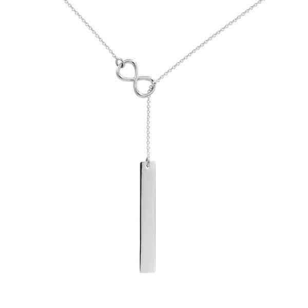 Naszyjnik z blaszką i znakiem nieskończoności. Osobisty grawerunek doda wyjątkowości i pomoże wyrazić uczucia. Nieskończoność jest symbolem trwałości i wieczności. Naszyjnik wykonany ze srebra próby 925. Waga: 3,3 gram. Całkowita długość naszyjnika: 48 cm