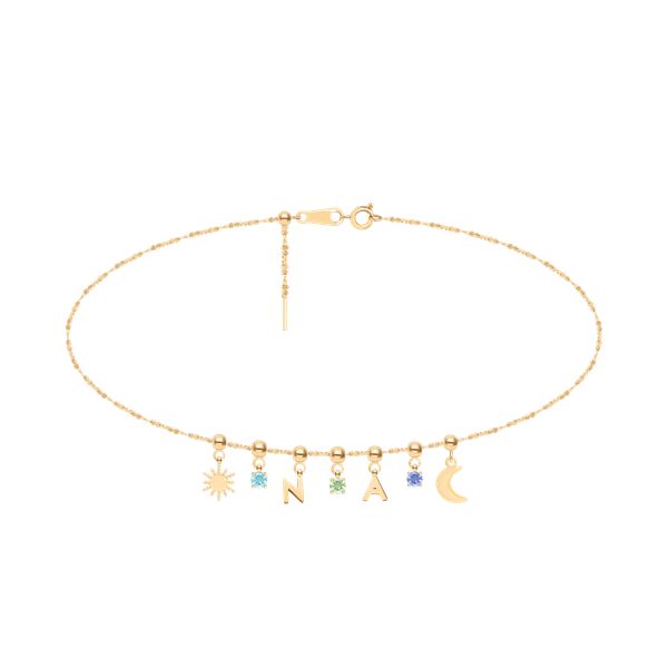 Personalizowany naszyjnik z siedmioma zawieszkami. Wybierz swoje symbole, ułóż je po swojemu i stwórz wyjątkowy talizman. Przejdź do opcji „Spersonalizuj produkt” i zaprojektuj własną kompozycję. Zawieszki wykorzystane w kompozycji: – Słońce, o wielkości 0,9 cm. Słońce symbolizuje światło, optymizm i radość. – Jasnoniebieska cyrkonia, o wielkości 0,4 cm. Kolor niebieski symbolizuje odwagę. – Litera N, […]