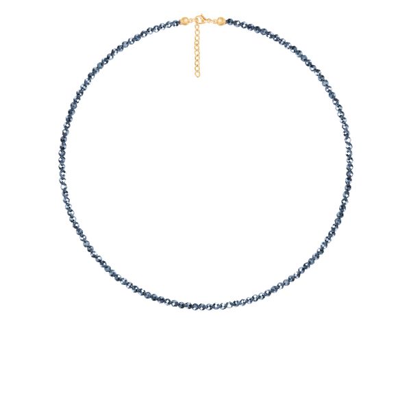 Naszyjnik wykonany z kamieni fasetowanych terahertz będącymi kamieniami energii i siły.Długość naszyjnika: 40 + 5 cm przedłużkiZe względu na użycie kamieni, wymiary naszyjnika mogą się nieznacznie różnić. Zapięcie wykonane ze stali pozłacanej 18-karatowym złotem.