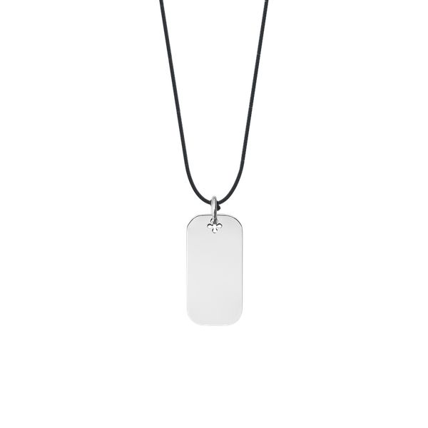 Naszyjnik z posrebrzanym Nieśmiertelnikiem o wielkości 2,4 cm na cienkim czarnym sznurku. Nieśmiertelnik to talizman, na którym uwiecznisz piękne wspomnienie, ważną chwilę lub wyznanie. Osobisty grawerunek uczyni Twoją biżuterię niepowtarzalną. Nieśmiertelnik wykonany jest ze stali szlachetnej pokrytej srebrem próby 925.