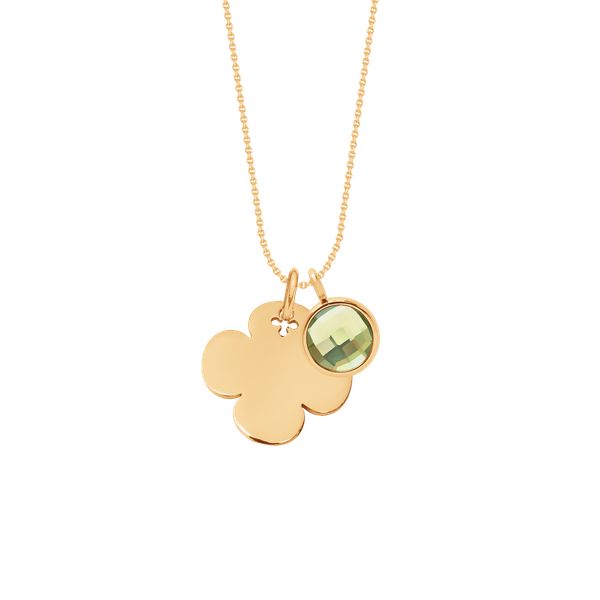 Naszyjnik z pozłacaną okrągłą koniczyną o wielkości 2 cm i pozłacanym zielonym szkłem kryształowym o wielkości 1 cm, na cienkim klasycznym pozłacanym łańcuszku. Osobisty grawerunek uczyni Twoją biżuterię niepowtarzalną. Koniczyna jest symbolem szczęścia i pomyślności. Każdy z kolorów szkła zawiera w sobie symbolikę najpiękniejszych emocji ukrytych w talizmanie. Zielony to szczęście. Zawieszka z kwarcem wykonana […]