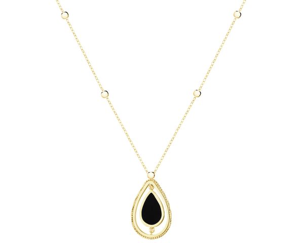 Złoty naszyjnik z onyksem syntetycznym – AP544-2898. Żółte złoto