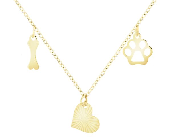 Złoty naszyjnik – łapka, serce, kość – AP544-3885. Żółte złoto