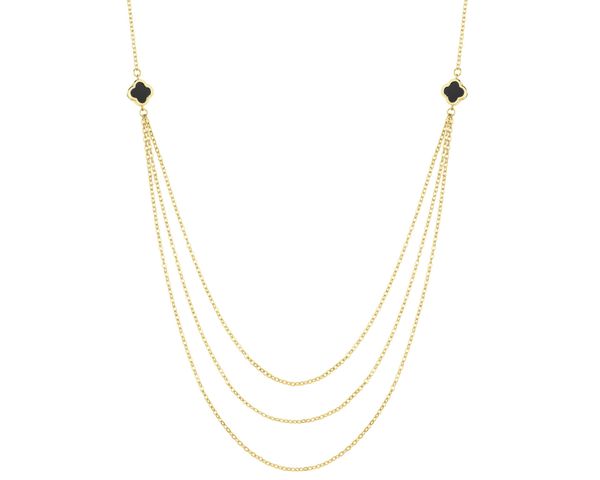 Złoty naszyjnik z onyksami syntetycznymi – koniczyny – AP544-3370. Żółte złoto