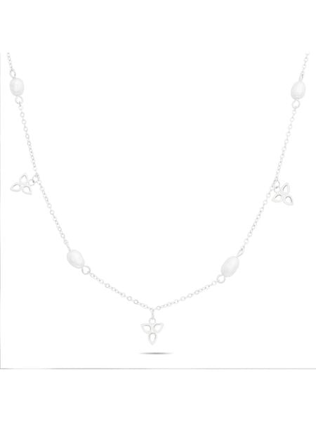 – materiał: stal szlachetna- zapięcie: karabińczyk- rodzaj perły: syntetyczna perła ozdobna- kolor pereł: biały- regulacja długości: takWskazówka: Zdjęcie produktu w powiększeniu.