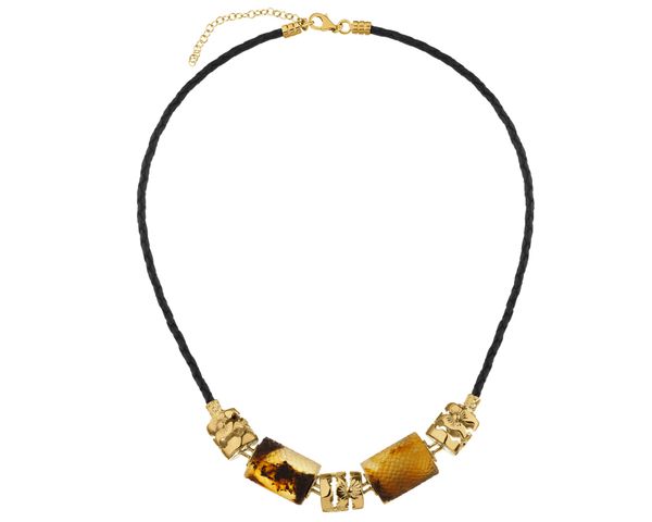 Naszyjnik srebrny z bursztynem – AP544-4669. Srebro pozłacane