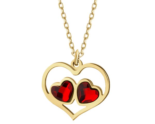 Naszyjnik srebrny ze szlifowany szkłem – serca – AP544-6886. Srebro pozłacane