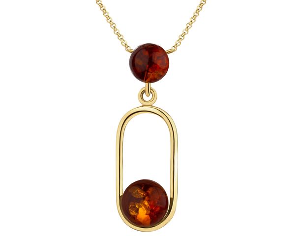 Naszyjnik srebrny z bursztynem – kulki – AP544-7134. Srebro pozłacane
