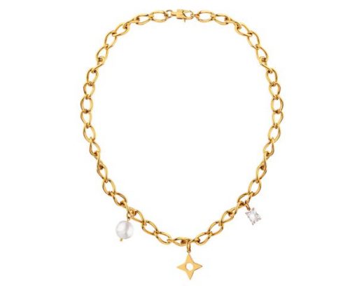 Naszyjnik ze stali szlachetnej z cyrkonią i perłą – EL533-6333. Stal szlachetna