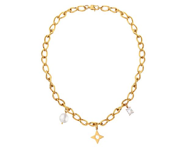 Naszyjnik ze stali szlachetnej z cyrkonią i perłą