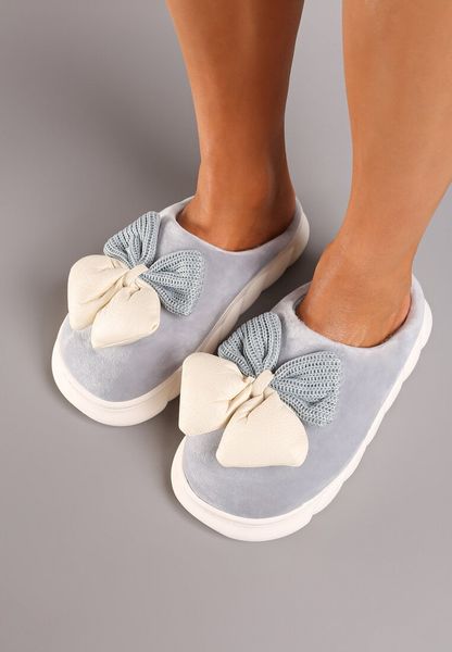 Szare Płaskie Kapcie z Futerkiem Ozdobione Kokardą Dezitha
