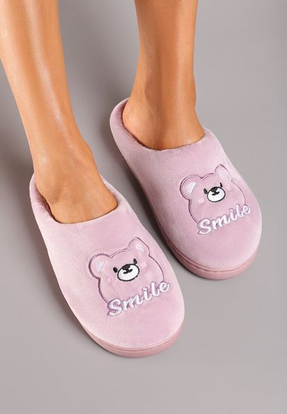 Różowe Wsuwane Kapcie z Welurowym Wykończeniem i Ozdobną Naszywką Naorise