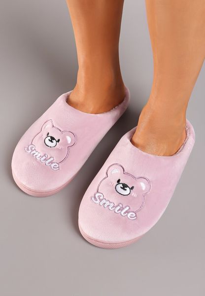 Różowe Kapcie Welurowe z Ozdobną Naszywką i Futerkiem Naorita