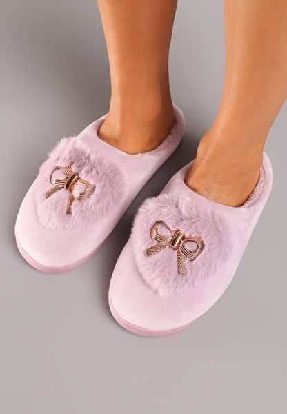 Różowe Kapcie Wsuwane z Futerkiem Ozdobione Kokardą z Metalowymi Detalami Reaniara