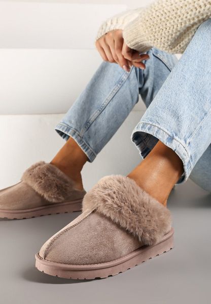 Ciemnobeżowe Kapcie z Ekozamszu z Futrzaną Wyściółką Zoleti