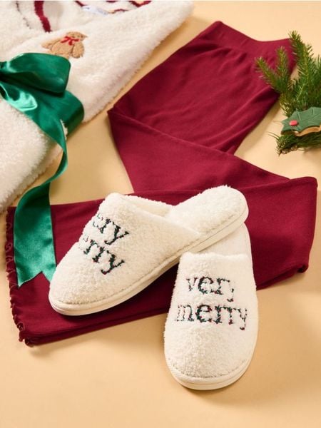 Sinsay – Ciepłe kapcie z motywem świątecznym – kremowy –