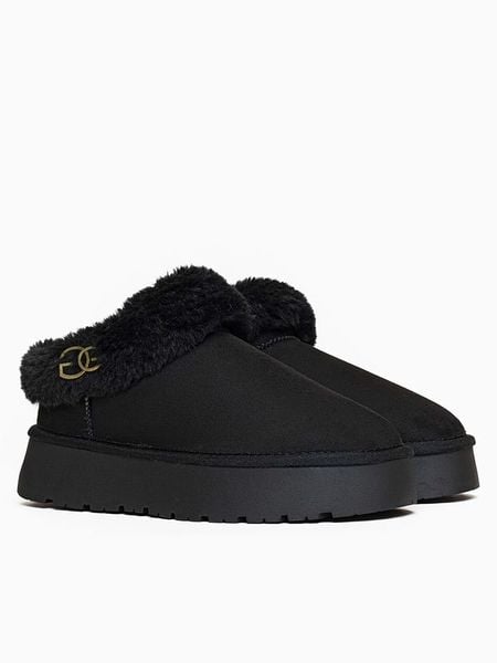 – zapięcie: bez- noski: zaokrąglone- detale: obszycie ze sztucznego futerka- forma obcasa: platforma- podeszwa: antypoślizgowa