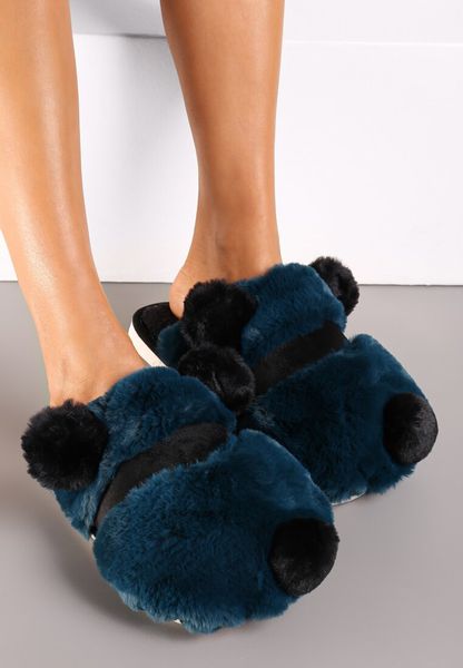 Niebieskie Kapcie Futrzane w Kształcie Misia Azomei