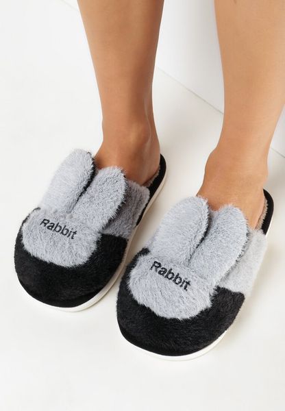 Kapcie Harash na płaskiej podeszwie. Wykonane z miękkiego materiału w futrzanym stylu. Z przodu aplikacja w postaci królika. Futrzane kapcie Harash idealne na prezent.
