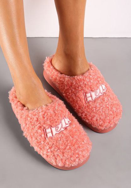 Ciemnoróżowe Futrzane Kapcie z Ozdobną Naszywką z Napisem Neussam