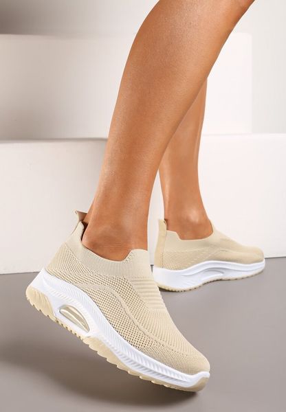 Beżowe Wsuwane Buty Sportowe na Koturnie z Perforacją Mellarina