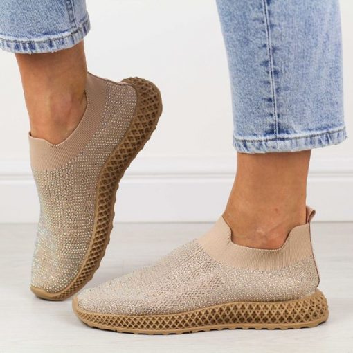 Beżowe sportowe buty damskie z cyrkoniami DiA Tw121