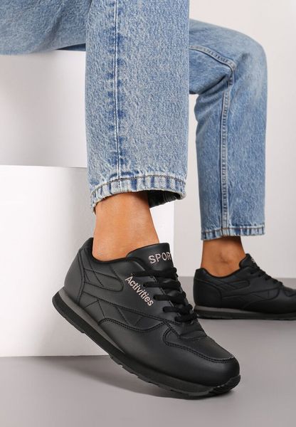 Czarne Casualowe Buty Sportowe Sneakersy na Płaskiej Tłoczonej Podeszwie Velanitta