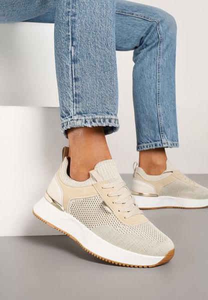 Beżowe Sneakersy z Siateczkową Cholewką Saramis