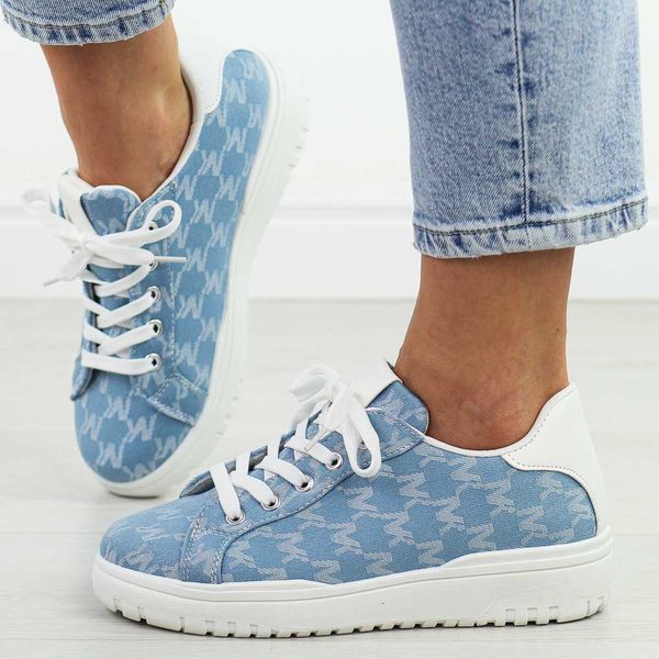 Niebieskie Casualowe Buty Sportowe na Grubszej Podeszwie Ozdobione Perforacją Fiovena