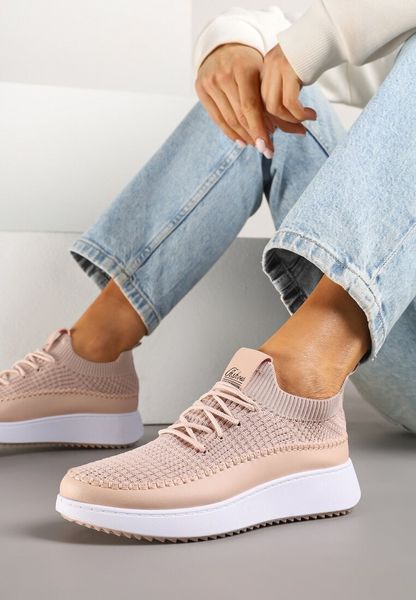 Różowe Siateczkowe Buty Sportowe Sneakersy na Grubej Tłoczonej Podeszwie Telarienna