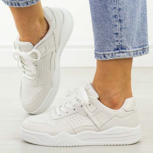 Białe Klasyczne Płaskie Buty Sportowe Sneakersy z Tłoczoną Podeszwą Velandria