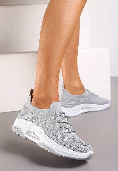 Szare Buty Sportowe z Elastyczną Wsuwaną Cholewką i Wkładką ze Skóry Naturalnej Rantia